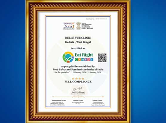 Bellevue Clinic, Kolkata is proud to be certified as an "Eat Right Campus" by the Food Safety and Standards Authority of India (FSSAI).